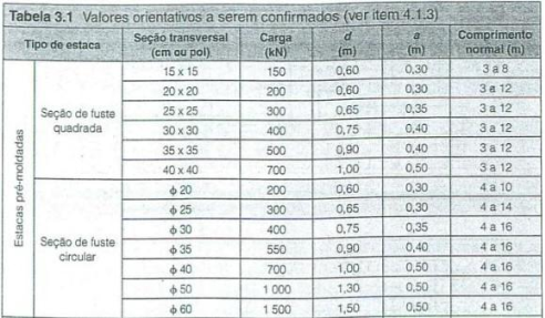 estacas. Para isso, será utilizada uma estaca pré-moldada com fuste de seção circular de concreto, com